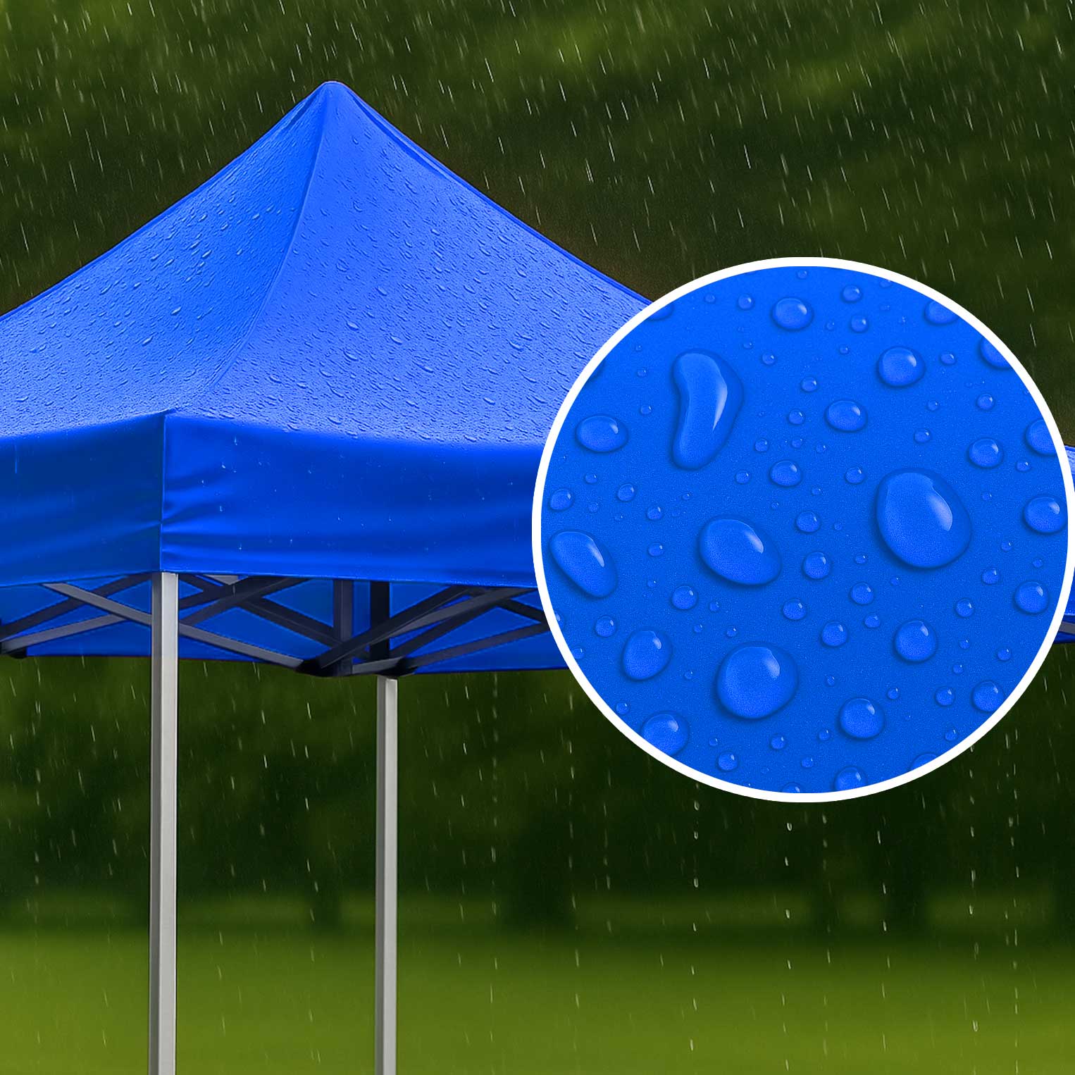 Tecto: Polyester resistente (240g/m2) com Silver Coated, que reduz a sensação de calor, com vedante nas costuras para melhor impermeabilização. É impermeável, resistente aos raios UV, às manchas e é lavável!