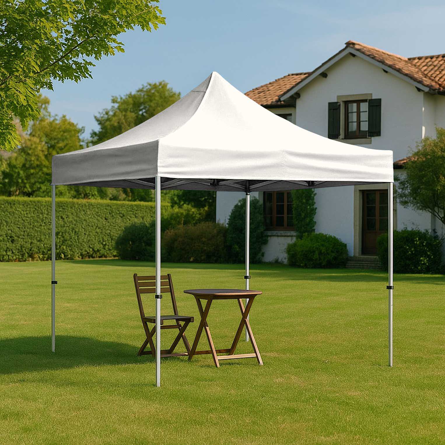 Tenda pop-up com estrutura em alumínio resistente à ferrugem. Leve e Fácil de montar, ideal para quem procura leveza e comodidade. Recomendado para locais com pouco vento ou interiores.