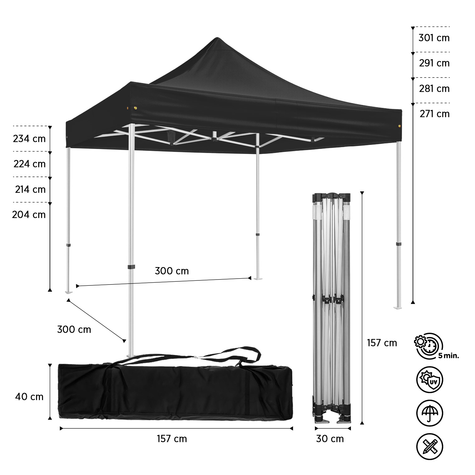 Modelo desenvolvido para uso frequente, com estrutura hexagonal em alumínio reforçado que garante maior robustez e estabilidade. Indicado para profissionais em eventos, mercados e ativações de marca, bem como para utilizadores que procuram uma tenda de longa duração e de uso permanente.