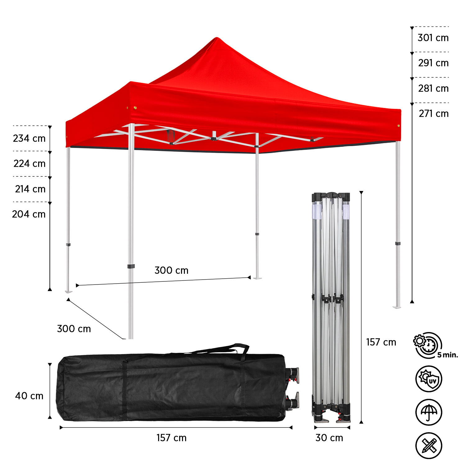 Modelo desenvolvido para uso frequente, com estrutura hexagonal em alumínio reforçado que garante maior robustez e estabilidade. Indicado para profissionais em eventos, mercados e ativações de marca, bem como para utilizadores que procuram uma tenda de longa duração e de uso permanente.